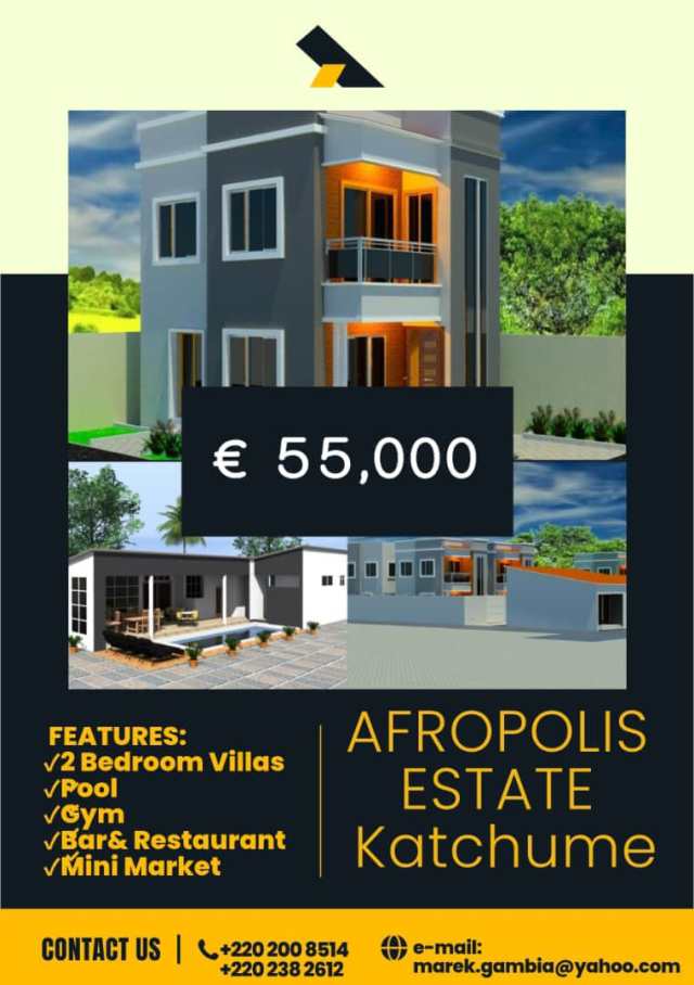 Afropolis baut moderne, zweistöckige Häuser in bester Lage zwischen Sanyang und Gunjur. Das Projekt bietet eine attraktive Investitionsmöglichkeit und die Chance, ein sonniges Zuhause in Gambia zu erwerben. Die ersten Häuser befinden sich derzeit im Bau, die Preise beginnen bei rund 55.000 Euro… Ein Pool, wunderschön angelegte Außenanlagen und Personal schaffen eine Wohlfühloase mit europäischem Flair, und das alles an der sonnigen Westküste Afrikas..