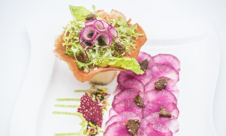 „Your vibe attracts your tribe“. „Es klingt nach einem Klischee, aber Veganer:innen kommunizieren ihre Ernährungsweise mit mehr Missionseifer als der klassische Fleischesser“, erzählt Michael Buchinger. Zu beobachten sei das in den einschlägigen Bewertungsportalen. Überraschend dagegen findet der Chef des Hotel Aunhamer im niederbayerischen Bad Griesbach, dass sich mittlerweile nicht mehr an Alter oder Geschlecht festmachen lässt, wer sich vegan ernährt. Geändert haben sich auch die Erwartungen: „Zu hoffen, dass die Buffetbeilagen diese Gästegruppe glücklich machen, reicht schon lange nicht mehr.“ Ausgefallen sollte es sein, weiß Küchenchef Marcus Sackmann. So wie seine fantasievolle Kreation eines Carpaccio vom marinierten Wassermelonen-Rettich mit gepufftem Reis und Hanf-Karamell-Sprinkles.